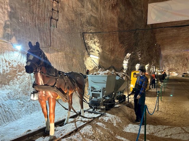 Zwiedzanie Kopalni Soli w Kłodawie - zjazd windą na poziom 600 m pod powierzchnią ziemi, przejście chodnikami do podziemnej kaplicy św. Kingi - patronki górników solnych. Obejrzenie wyeksploatowanych komór solnych oraz maszyn używanych w podziemnym górnictwie solnym.